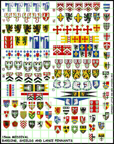 LBMS 15mm Banners - 15mm Medieval pennants, barding and shields